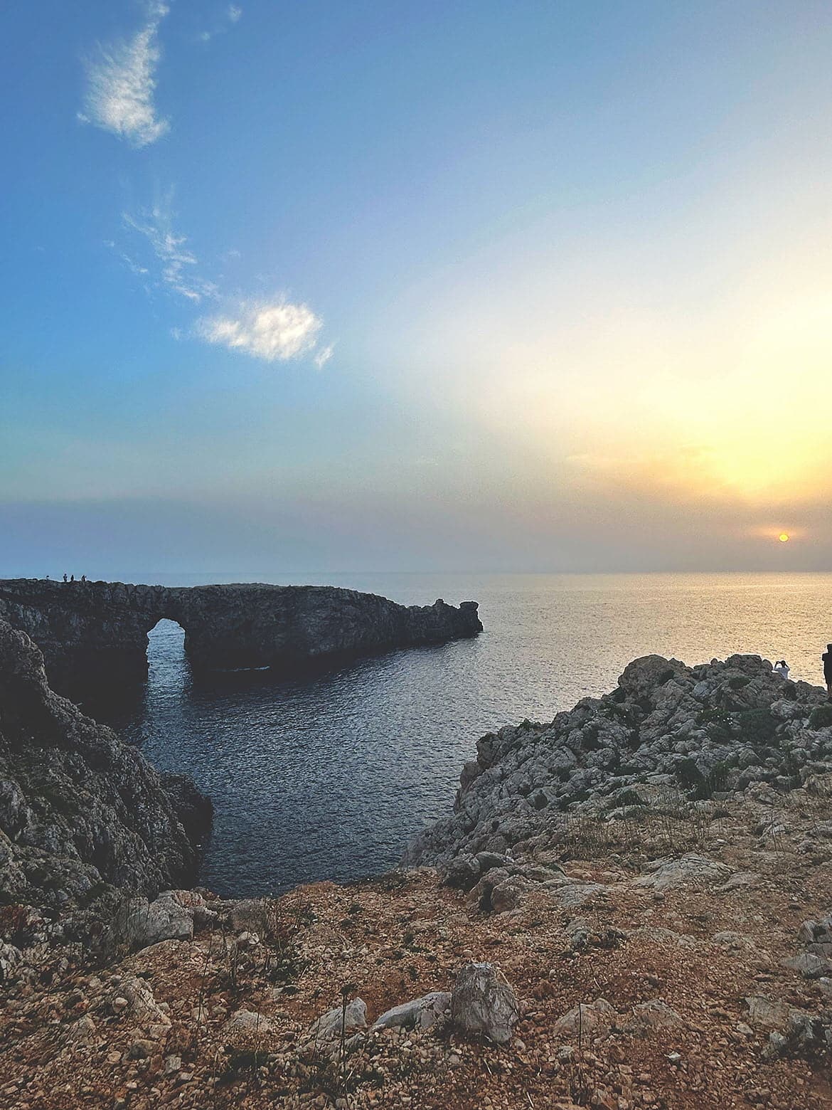 Al atardecer fuimos a Pont D´En Gil a ver esconderse el sol en uno de los sitios más bonitos pero a su vez más a reventar de gente, al estar en la Ciutadella es como una especie de peregrinación a la Meca… gente mires a donde mires, no obstante, visita obligada para ver el atardecer.